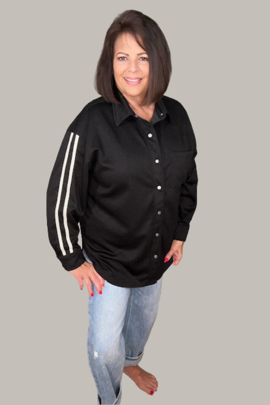 - Details: This Scuba Jacket is so on trend with the double side stripes. Wear with your favorite denim or with the MATCHING Bottom (Double stripe jogger)